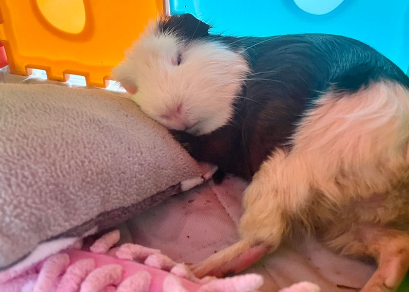 Rudy is a cutie who will stare at you if she wants to be fed and wheeks at the slightest smell of food.